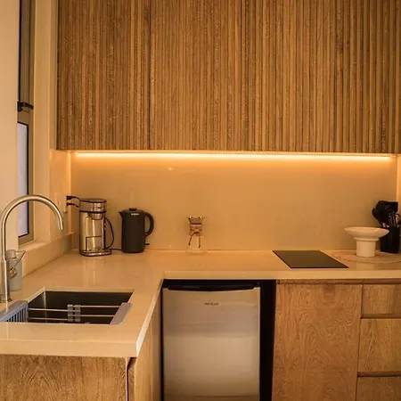 The accommodation is equipped with self-catering facilities, including a kitchen with coffee and tea making equipment, a refrigerator, and glassware.